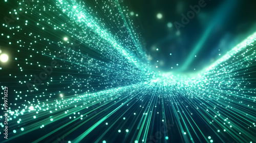 Digital technology speed connect blue green background, cyber nano information, innovation future tech data, internet network connection, Ai big data, line dot illustration 3d. Generative Ai