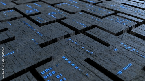Digital texture abstract design blue light geometric pattern technology background futuristic surface 3D rendering dark tones modern art digital grid illuminated lines cyber aesthetic visual depth