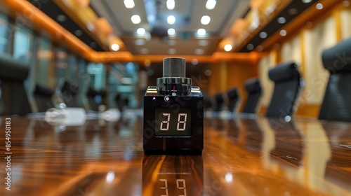 Digital Timer on Conference Table During Intense Business Discussion in Modern Office