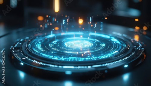 Digital transformation strategy visualized with glowing holographic business tools in a sleek office Futuristic Hologram Minimalist