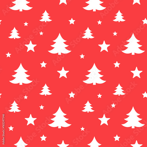 Digital vector red happy new year merry christmas icons with drawn simple line art info graphic, seamless pattern, presentation with tree and stars elements around promo template, flat style