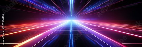 Digital Velocity: A vibrant abstract concept image featuring converging lines of red and blue light streaking towards a bright, luminous center, symbolizing speed, progress.