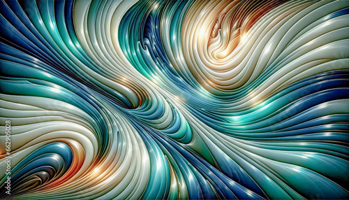 Digital Wallpaper Focused on an Iridescent Spectral Wave Illuminated under Strong Lighting Abstract Pattern is Complemented, seamlessly blending Smooth and Hard Lines Digital Art Cover Poster