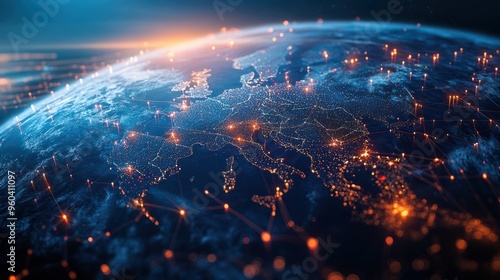 Digital world globe, concept of global network and connectivity on Earth, high speed data transfer and cyber technology, information exchange and international telecommunication Digital world globe