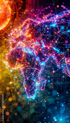 Digital World Map with Glowing Network Connections and Vibrant Colors