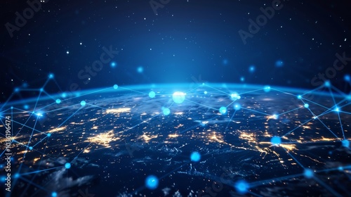 Digital world with a grid of data lines showing global telecommunication and IoT