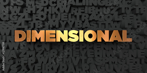Dimensional - Gold text on black background - 3D rendered royalty free stock picture. This image can be used for an online website banner ad or a print postcard.