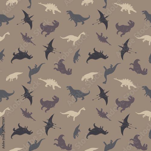 Dino Seamless Pattern, Cute Cartoon Dinosaurs Doodles Vector Illustration