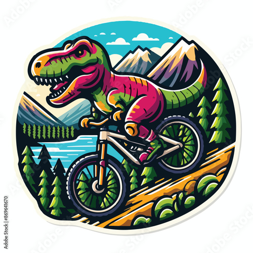 dinosaur riding a bike with mountain