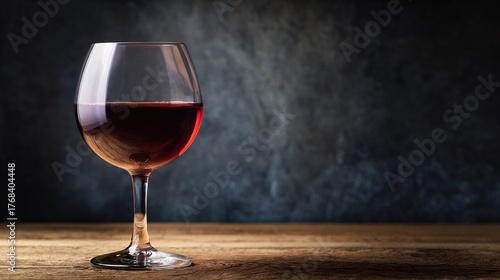 directional. Red wine in elegant goblet glass, rich burgundy liquid, sophisticated dining atmosphere. bar promotions, beverage menus, designed for food & beverage menus and cafe branding.