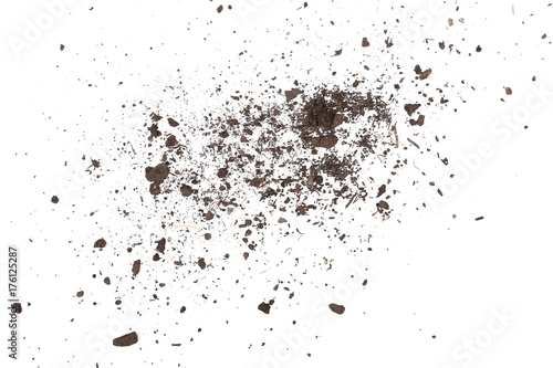 Dirt, soil pile isolated on white background, top view