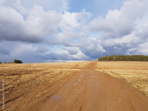 Dirt spring road in the field