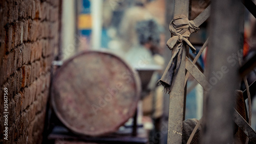 Dirty Cloth Tied Onto Rusty Metal Rack