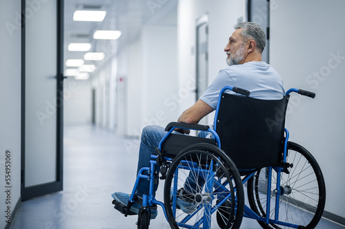 Disabled man in a wheelchair in a rehabilitation center