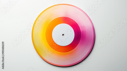 disc isolated on white, beautiful LP record, top-down view, white background, lovely LP design