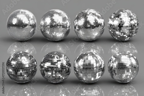 Disco Ball Set. Realistic collection of shiny mirror disco balls. Vector