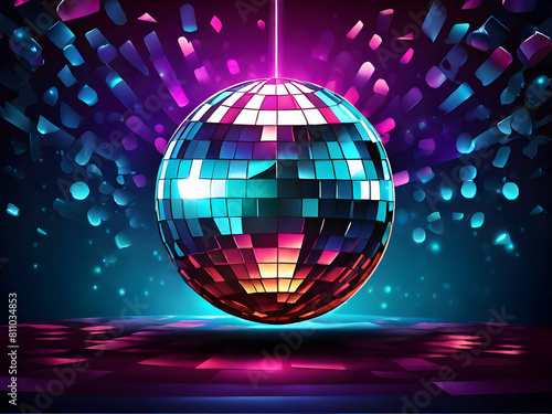 disco ball with disco lights party, mirror, dance, club, light, music,Ai generated