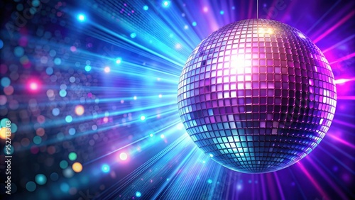 Disco ball with purple and blue lights creating a vibrant party nightlife background, Disco ball, purple, blue, lights, party