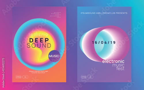 Disco Fest. Wave Club Poster. Dance And Carnival Design. Trendy Glitch For Set. Abstract Background For Cover Layout. Blue And Purple Disco Fest