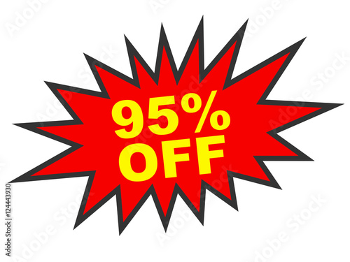 Discount 95 percent off. 3D illustration on white background.