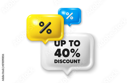 Discount speech bubble offer 3d icon. Up to 40 percent discount. Sale offer price sign. Special offer symbol. Save 40 percentages. Discount tag discount offer. Speech bubble sale banner. Vector