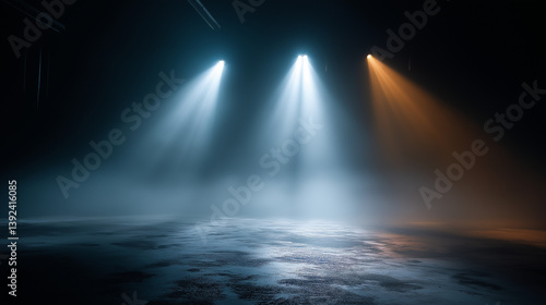 Discover a Foggy Mist-Covered Stage with Soft Beams of Light Creating Enchanting Atmosphere for Magic