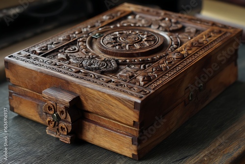 Discover intricately carved wooden box, showcasing timeless craftsmanship and adding rustic charm to your home decor collection