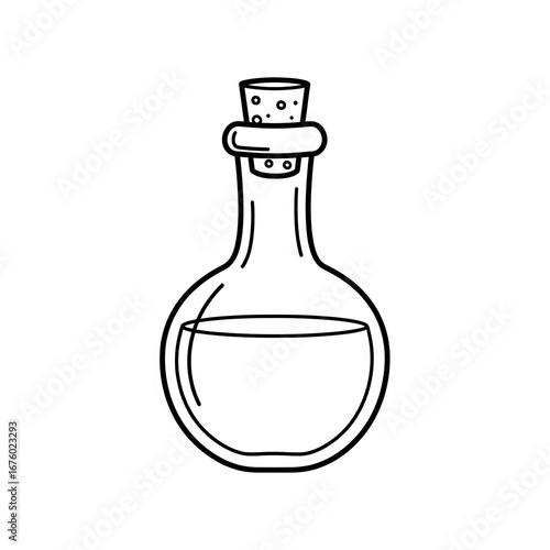 Discover magical potion bottle with cork stopper, perfect for fantasy or science themes