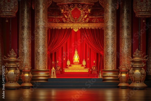 Discover the beauty of traditional Thai festivals with vibrant decorations in a stunning temple setting, Thailand festival advertisement poster, traditional decor, product stage highlight