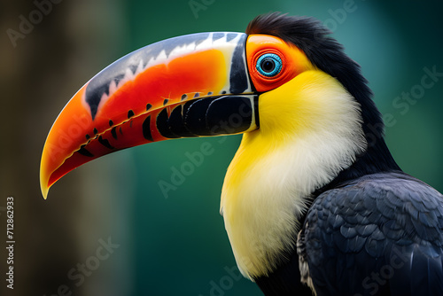 Discover the vibrant world of a toucan through this stunning close-up shot, highlighting its radiant colors and distinctive beak in intricate detail.