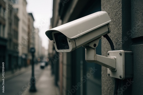 Discreet CCTV Security Camera Mounted on an Urban Street Wall Monitoring Public Safety and Surveillance