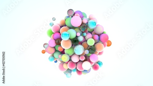 Diseño Abstracto de esferas coloridas. Ilustración futurista para fondo. Rener 3d iceberg, sci fi, paisaje, metal, liquido, geometría.