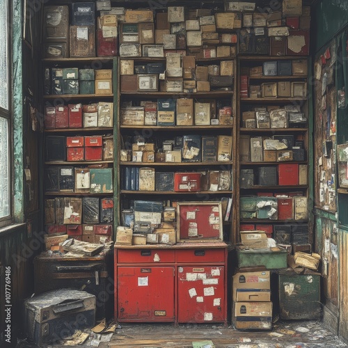 Disorganized Storage Space Filled with Boxes, Bins, and Clutter in a Chaotic Environment for Home Organization and Decluttering Inspiration