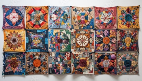 Display of Decorative Handcrafted Quilts Featuring Unique Artistic Designs
