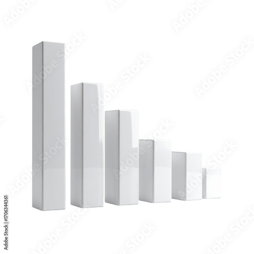Display of increasing white rectangular bars representing growth or progress in a minimalist design setting