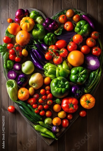 display vibrant organic produce artfully arranged heart shape celebrating freshness design, aromatic, artistic, colorful, culinary, edible, aesthetic