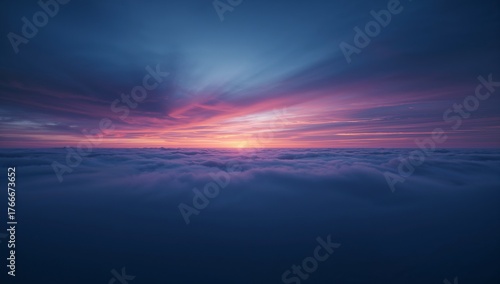 Displaying vibrant cloud layer glowing with warm pink and orange hues at sunrise, open sky