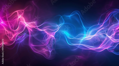 displays a vivid abstract background featuring flowing, neon-colored waves of pink, purple, and blue, set against a dark backdrop. The swirling lines create a sense of movement and energy