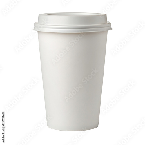 Disposable coffee cup with lid isolated on white background for takeout beverage or cafe branding