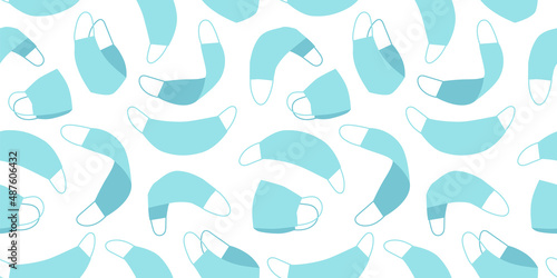 Disposable face mask cartoon seamless pattern. Coronavirus prevention masks background for air pollution protection or medical health care concept.