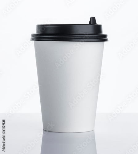 Disposable paper coffee cup isolated on white background
