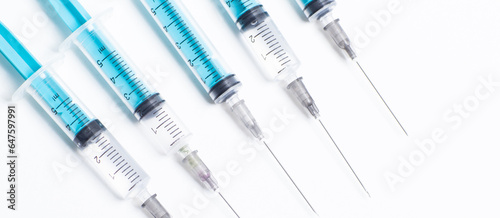 Disposable plastic syringe prepared for injection and vaccination in the hospital. The concept of medicine and health