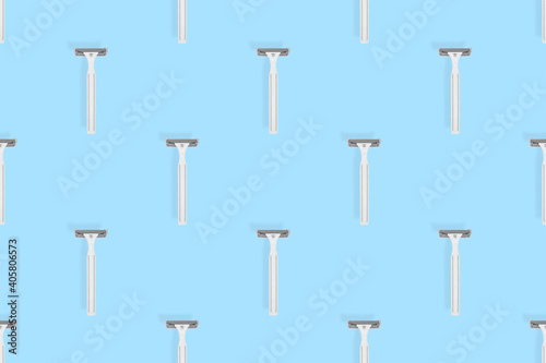 Disposable razor seamless pattern. Colorful plastic disposable razors Design for wrapping paper, poster banner and more for what.