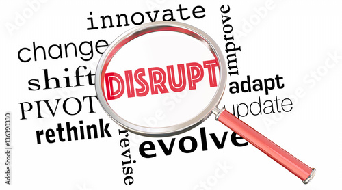 Disrupt Change Innovate Evolve Magnifying Glass 3d Illustration