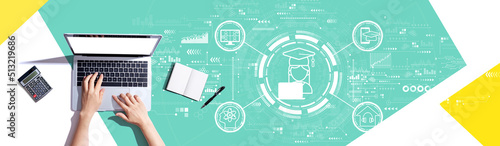 Distance learning theme with person using a laptop computer