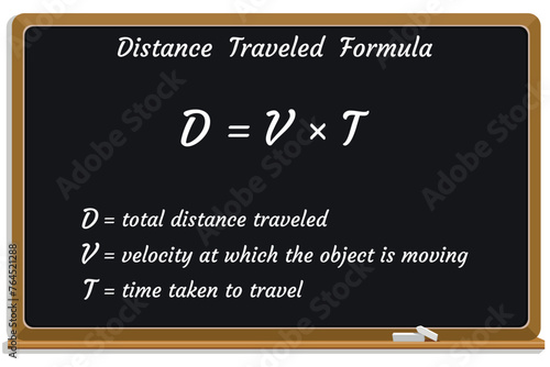 Distance Traveled Formula on a black chalkboard.. Education. Science. Formula. Vector illustration.