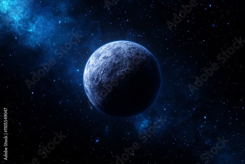 Distant Blue Planet in Deep Space with Starry Background and Nebula Clouds