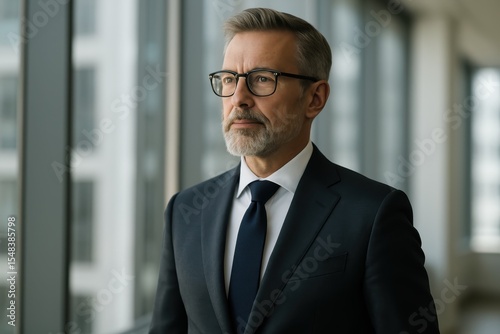 Distinguished senior executive in designer eyewear displaying professional excellence in corporate environment
