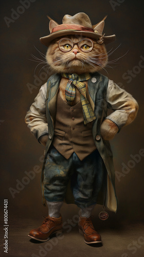 Distinguished Wise Cat Portrait Vintage