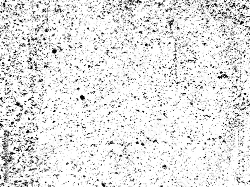 Distress black and white vector texture of a concrete wall with large and small grains. Vector illustration. Weathering effect cracks scratches scuffs dust natural grunge background stencil overlay